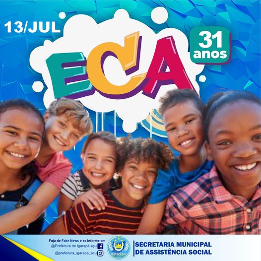 Hoje dia 13 de Julho de 2021, comemora-se os 31 anos da criação do ECA (Estatuto da Criança e do Adolescente), que estabelece os direitos aos menores de 18 anos