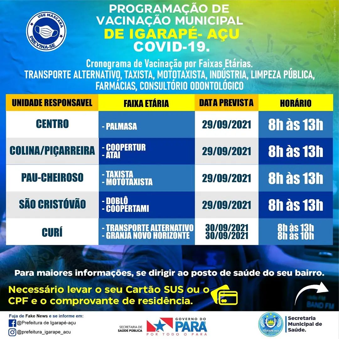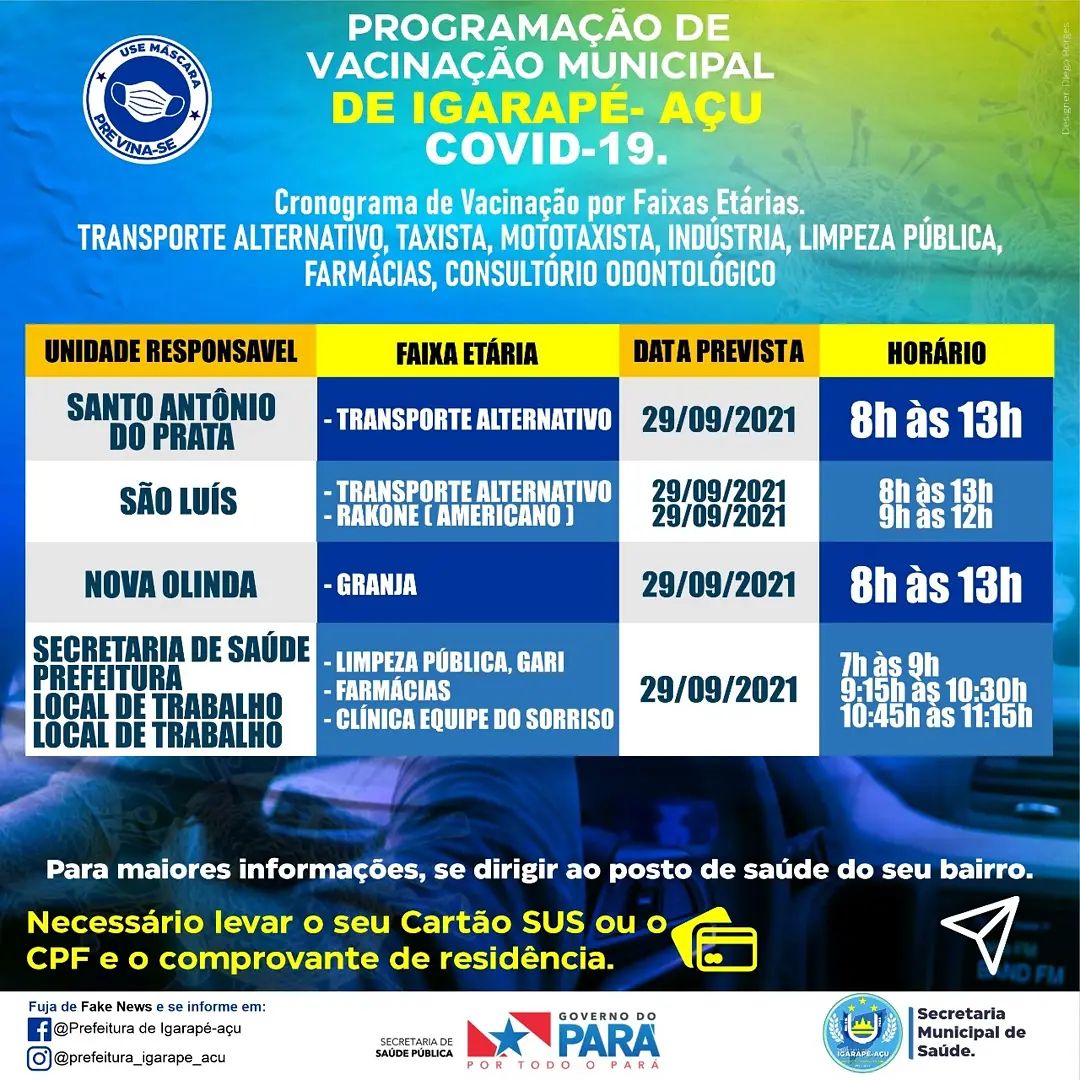 Igarapé-Açu continua vacinando contra a COVID-19.