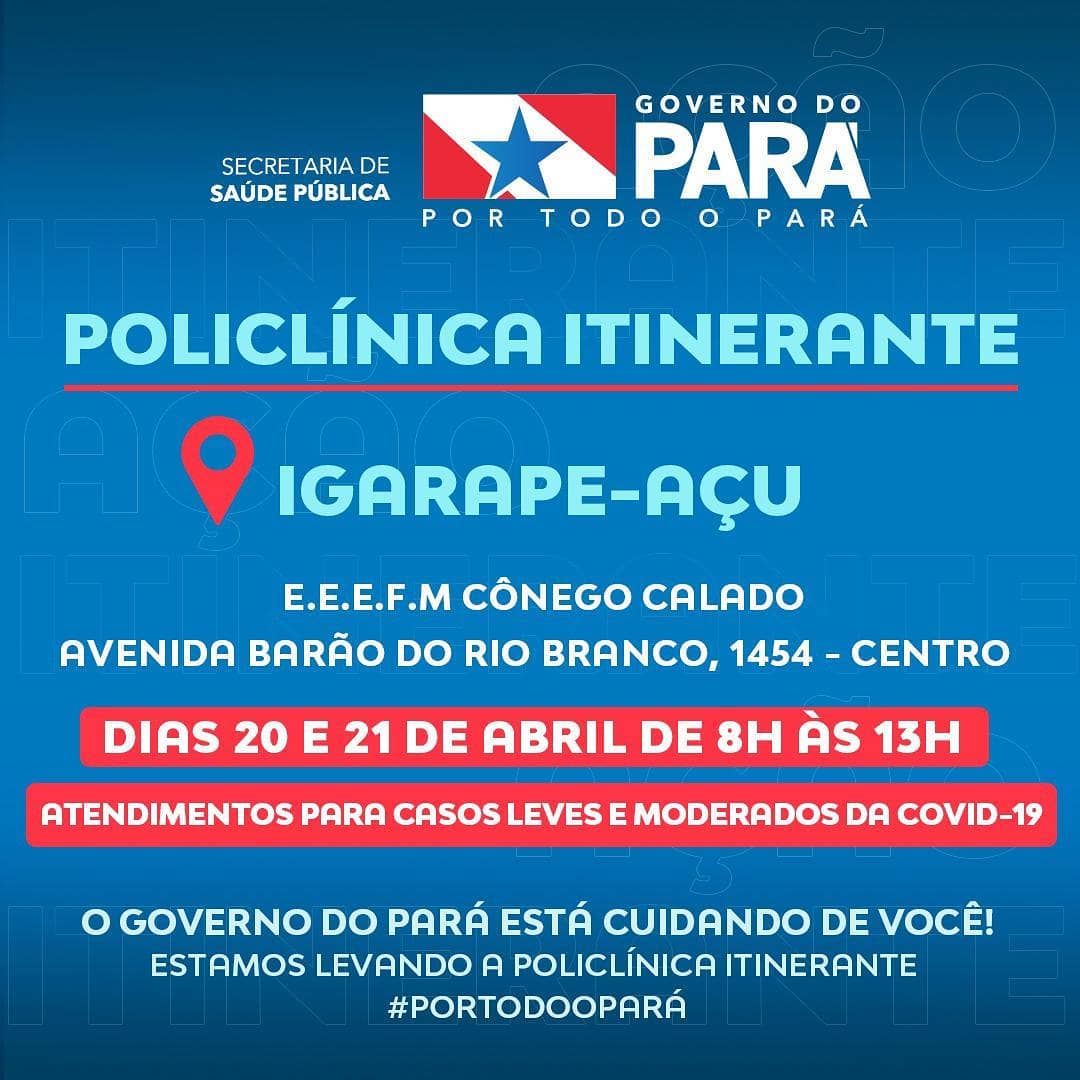 Dias 20 e 21 de Abril de 8h Às 13h. Atendimentos para Casos Leves e Moderados da Covid-19