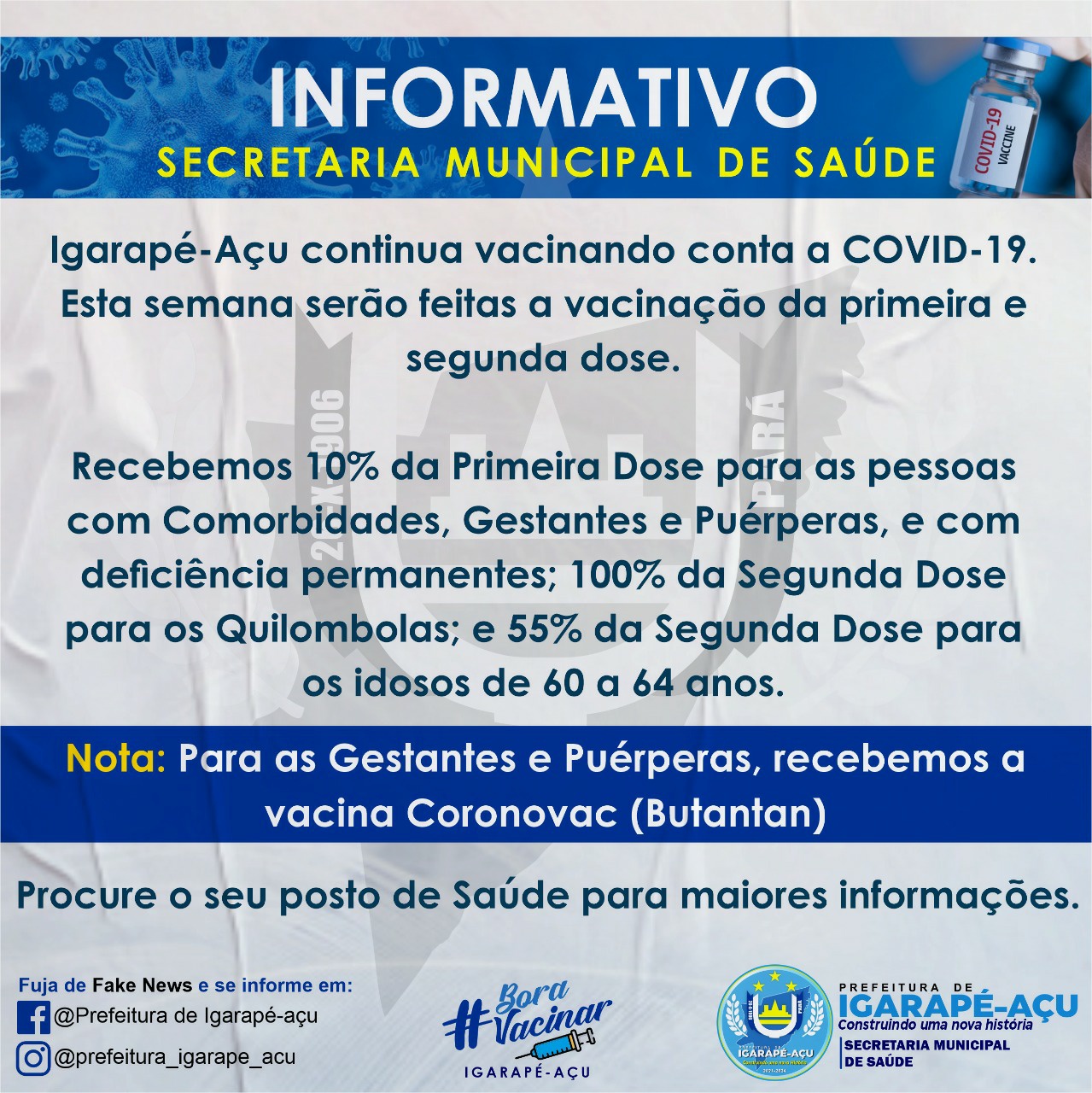 Igarapé-Açu continua vacinando contra a COVID-19.