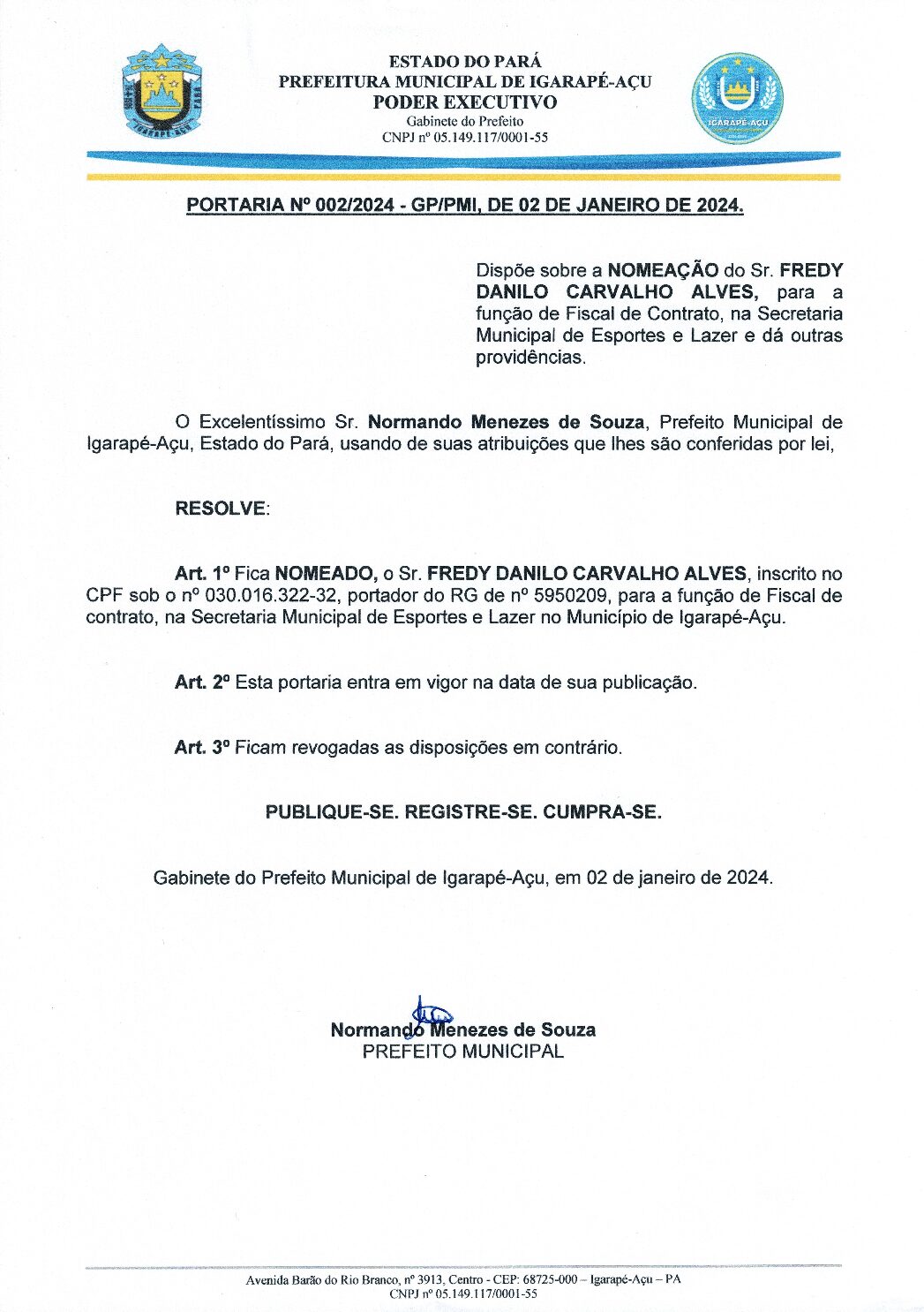 PORTARIA Nº 002-2024 – FREDY DANILO CARVALHO ALVES
