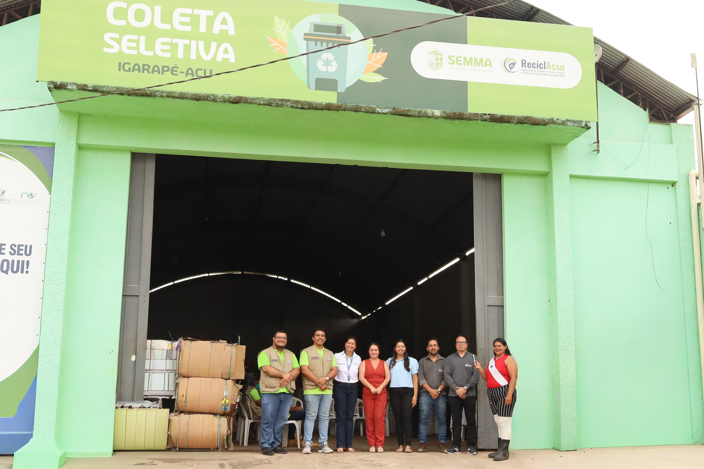 Foto: Equipe da SEMMA, da Cooperativa ReciclAssu e membros da empresa que trouxe o triturador móvel para Igarapé-Açu