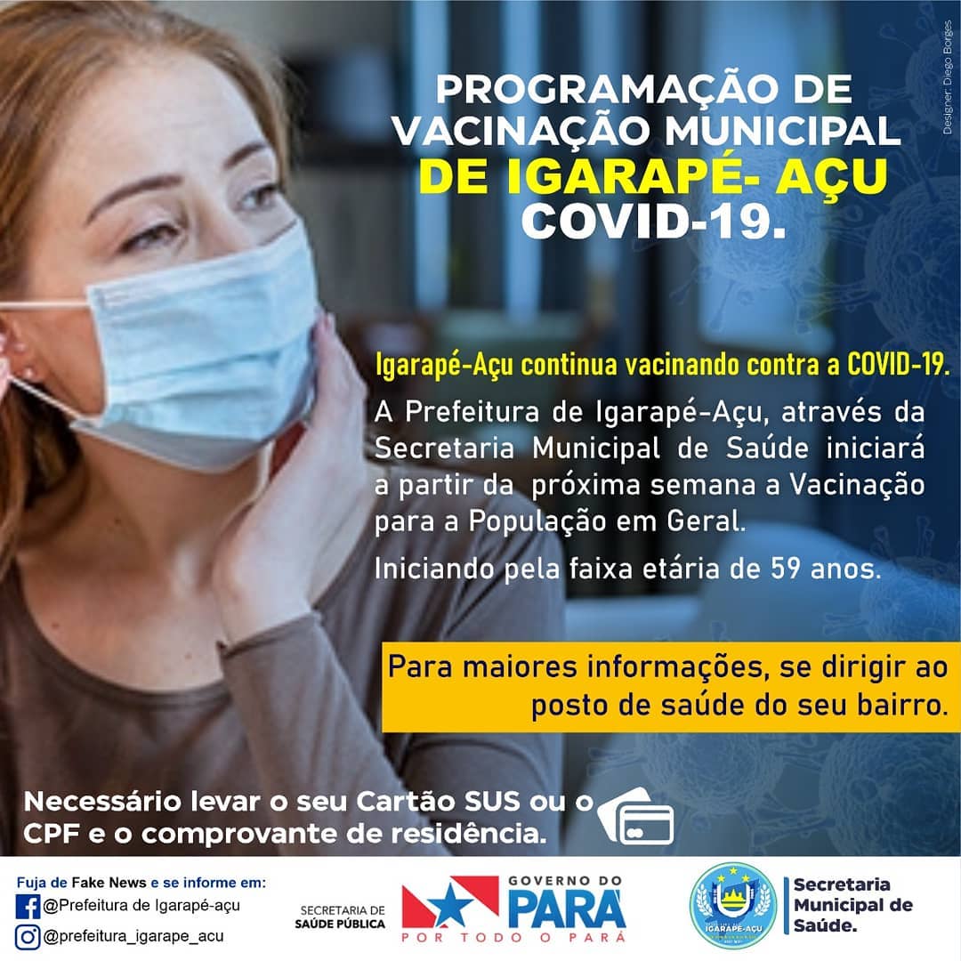 A Prefeitura de Igarapé-Açu, através da Secretaria Municipal de Saúde iniciará apartir da próxima semana a Vacinação para a População em Geral.